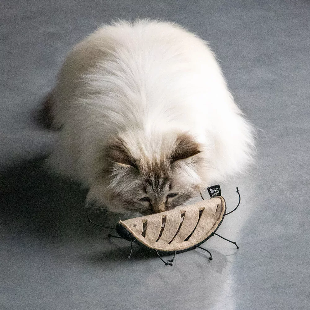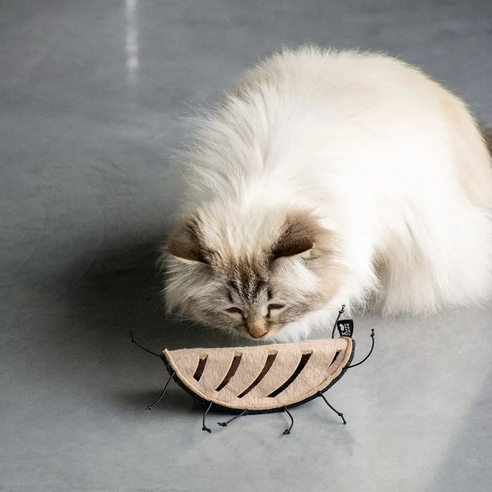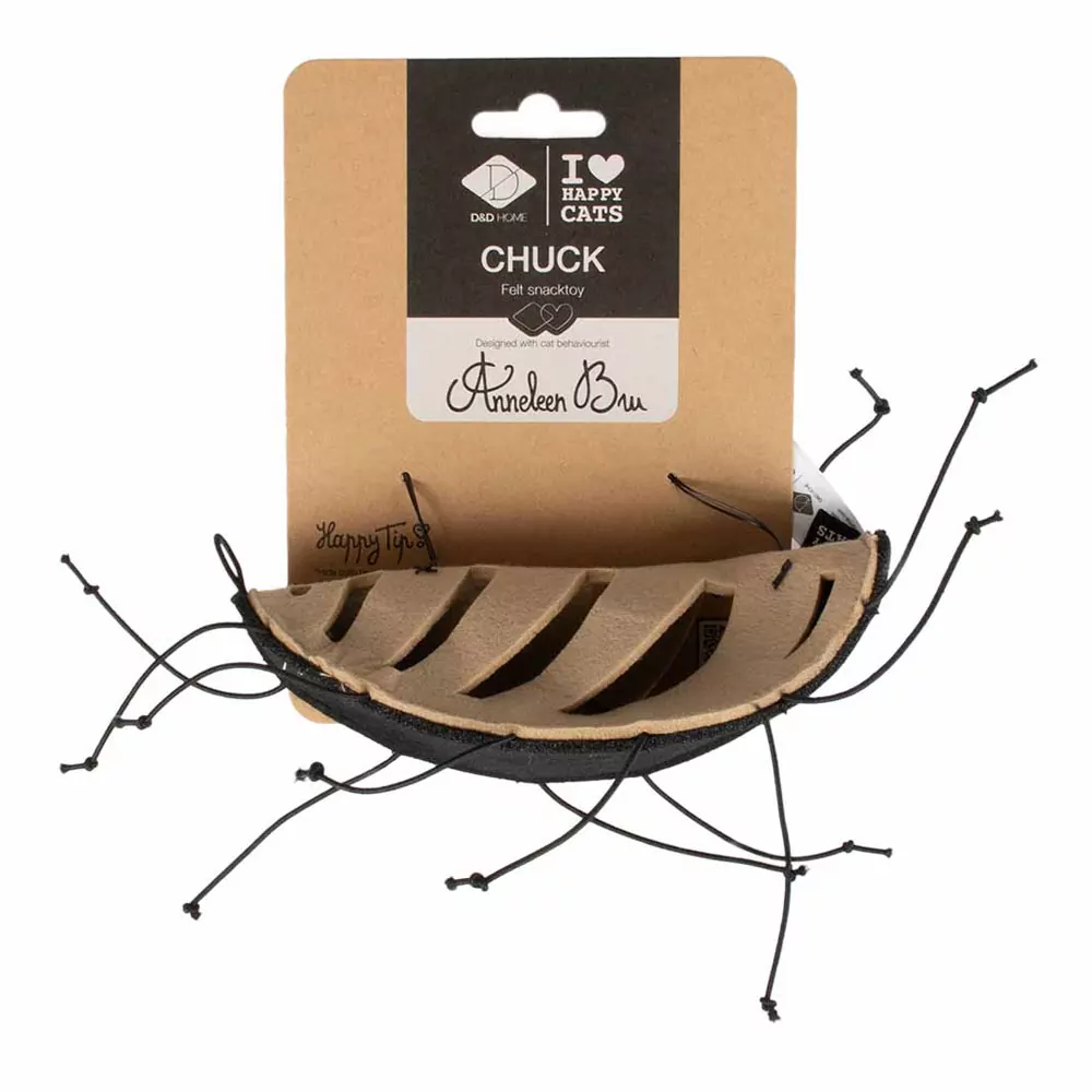 Dit grappig speeltje is de nieuwe vriend van je kat. Zie jij je kat ook wel eens achter vliegjes, kleine spinnetje of andere insecten aanjagen? De Chuck is een combinatie van een soort insect en een vis. Daarnaast heeft de Chuck een behoorlijk formaat (16 cm lang), waardoor hij ook perfect is als trappelspeeltje. De Chuck kan gevuld worden met snacks, waardoor hij het jachtinstinct nog meer aanwakkert. De Chuck is gemaakt van stevig vilt en heeft een afmeting van ca. 16 x 6 x 5 centimeter (l x b x h).