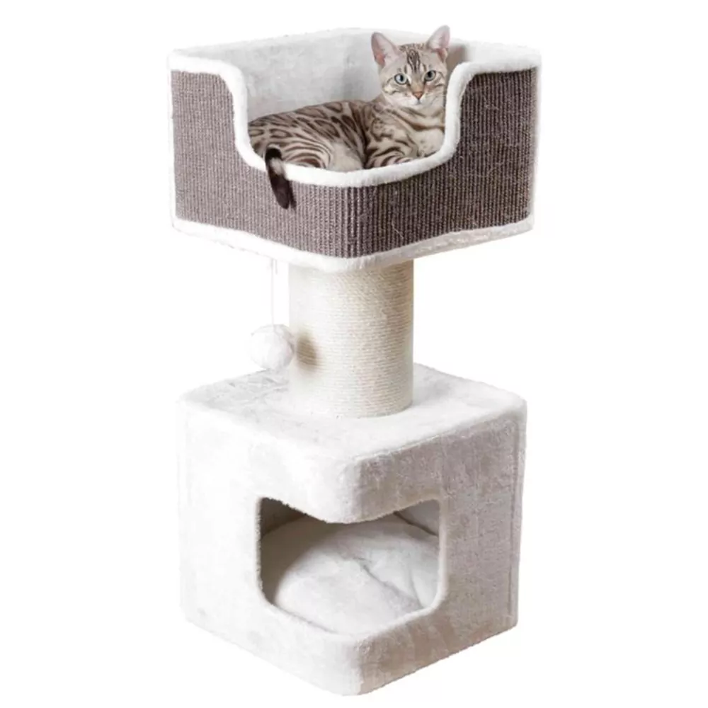 Deze extra stevige krabpaal is ideaal voor jouw grote kat. De krabpaal bevat een extra dikke sisalpaal, waardoor hij uitermate geschikt is voor grote katten. Door het uiterlijk kan hij ook nog eens overal staan in de woonkamer. Het ligbed is voorzien van een comfortabel kussen, hier kan jouw kat lekker tot rust komen en het overzicht behouden. Daarnaast bevat de krabpaal een balletje om mee te spelen en een comfortabel kattenhuis. Hier kan jouw kat fijn gaan slapen als hij moe is. De sisalpaal zorgt ervoor dat jouw kat aan alle krabbehoeften kan voldoen. Door te krabben onderhoudt een kat namelijk zijn nagels en bakent hij zijn territorium af.