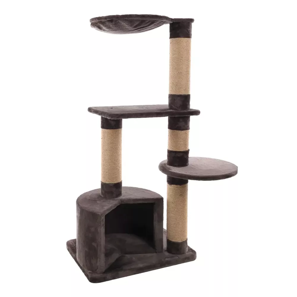 De krabpaal Brownie is perfect voor het landelijke interieur. Door de de chocolade bruine kleur heeft de Brownie krabpaal is een krabpaal met een hele warme landelijke uitstraling. De bodemplaat, de plateau’s en de hangmat zijn allemaal voorzien van zacht bruin pluche. Verder is de krabpaal uitgerust met een rustplek in de vorm van een halve maan, waar de kat heerlijk in kat schuilen. Uiteraard kan er ook gekrabd worden, want deze krabpaal beschikt over maar liefst 4 palen met sisal.