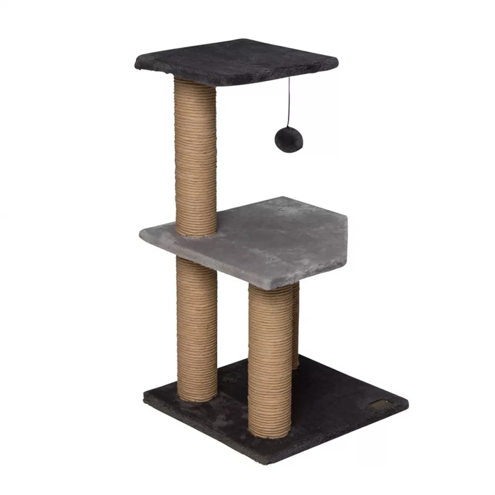 Dit compacte model kun je tegen de muur plaatsen of in een hoek. Zo bespaar je dus ook nog eens ruimte! Jouw kat kan op deze krabpaal krabben, uitrusten en spelen. Het sisal op de palen is helemaal verlijmd. Jouw kat kan hier zorgeloos aan krabben. Met het balletje aan elastiek kan worden gespeeld. En op de plateaus kan jouw kat heerlijk uitrusten.