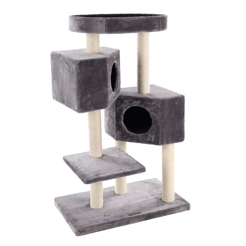Deze mooie krabpaal is de perfecte relaxplaats voor je kat. Zo beschikt hij over twee mooie slaaphuizen, en een gewatteerde ligplaats bovenaan de krabpaal. Hierdoor kan de kat mooi het overzicht bewaren. De krabpaal is uitgevoerd met meerdere krabpalen, zodat er voldoende ruimte is om te krabben. Hierdoor kan de kat zijn energie kwijt. Krabben is tevens zeer belangrijk voor het onderhoud van de nagels en de mentale gezondheid van de kat. De Kresko heeft een totale afmeting van 74 x 40 x 115 centimeter.
