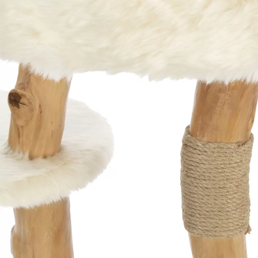 Deze moderne krabpaal is een echte eyecatcher. Naast dat je je kat blij maakt met deze krabpaal, staat hij fantastisch in een Scandinavisch ingericht interieur. De paal is voorzien van meerdere plateaus zodat je kat kan klimmen, en tegelijkertijd is het hout en het daaraan bevestigde sisal perfect om de nagels aan te scherpen. Voor de constructie is gebruik gemaakt van perenhout. Om dit hout is stevig sisal bevestigd. De rest van de krabpaal is bekleed met langharig, zacht pluche. Het bovenste plateau beschikt over een relaxmand met een rand en omkeerbaar kussen, dat met de handwas uitgewassen kan worden. De bodemplaat heeft een doorsnede van ca. 38 centimeter en de krabpaal is ca. 73 cm hoog.