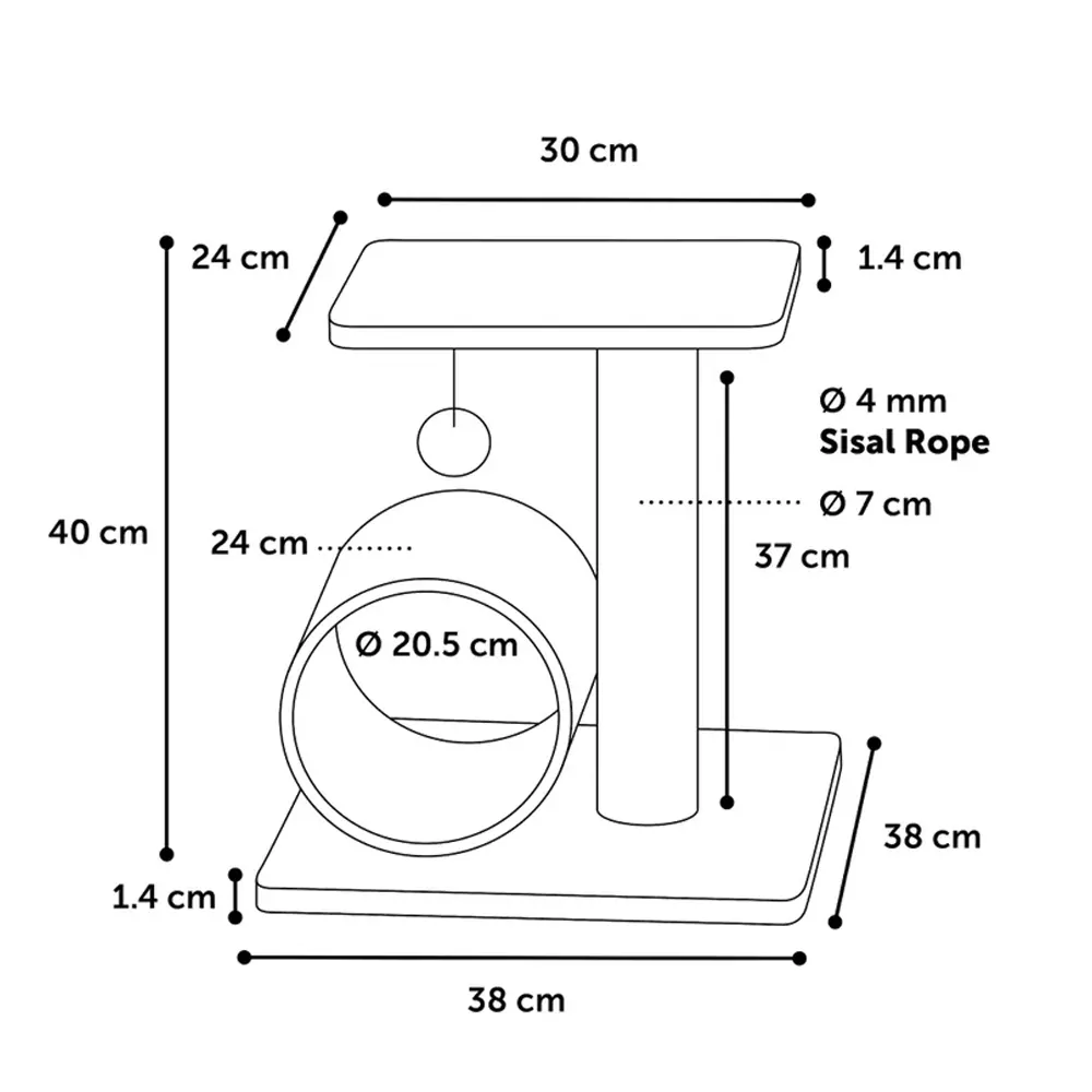 Dit compacte model is ideaal voor een kitten of kleine kat. Aan de sisalpaal kan worden gekrabd en jouw kat kan zich goed uitstrekken. Naast de sisalpaal is een tunnel waar jouw kat lekker in kan rusten. Op het plateau kan de kat zitten en de boel een beetje overzien. Heeft hij zin om te spelen? Dat kan met het balletje dat onder het plateau hangt!